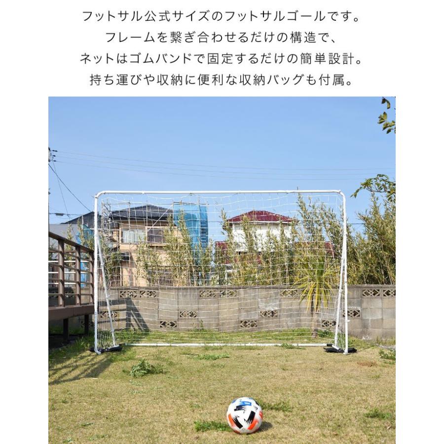 商品情報 組み立て簡単!トレーニングにも最適! 公式サイズのフットサルゴール フットサル公式サイズのフットサルゴールです。 フレームを繋ぎ合わせるだけの構造で、 ネットはゴムバンドで固定するだけの簡単設計。 持ち運びや収納に便利な収納バッグも付属。 フットサル以外にもいろいろ使える! 自主練習やミニゲームにもオススメ! 公式サイズなのに組み立てがとっても簡単なので、 フットサルチームはもちろん、お庭での自主練習から ミニゲーム形式の練習にもオススメなアイテム。 ついつい強烈なシュートを打っても安心!? ネットの固定はゴムバンドタイプ採用 ネットの固定はゴムバンドタイプなので、 ボールが当たっても破損のしにくい仕様です。 ついつい強いボールを蹴っても安心です。 室内使用も可能なフットサルゴール クッション材とサンドバッグ付き 屋外の使用はもちろん、室内使用もできます。 フレームにはEVA製クッション材が付き、 錘としてサンドバッグが付属します。 ブランド: フィールドア(FIELDOOR) [店舗管理用] ys-a16486 a16486 |