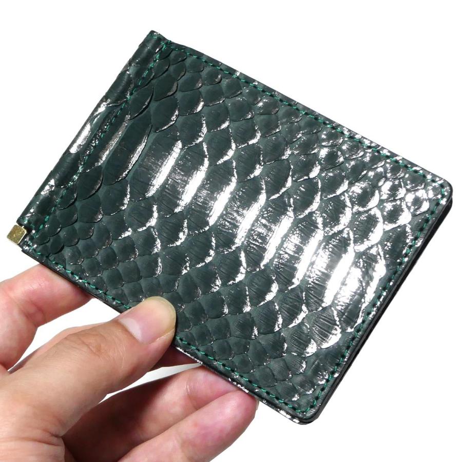 商品情報 薄型・コンパクト 工房オリジナル 札ばさみ 皮革小物専門店が厳選した”良質なレザー・細部にまでこだわった造り”を経年変化と ともに楽しんでいただける弊社オリジナルの札ばさみ。 札ばさみは、ばね式の金具にお札を挟み込むタイプのお財布で、スリムなデザイン。 機能はシンプルに、片側3段・合計6カ所のカード入れと、ポケットが2カ所。お札を挟むクリップは指先で操作しやすい湾曲型でコンパクトながら収納力抜群 スーツやパンツのポケットに入れても違和感のない薄さが魅力のお財布です。 機能 マネークリップ×1 カード入れ×6 ポケット×2 素材 本体:パイソン革(ヘビ革) 内装:パイソン革(ヘビ革) サイズ 縦85mm×横110mm |