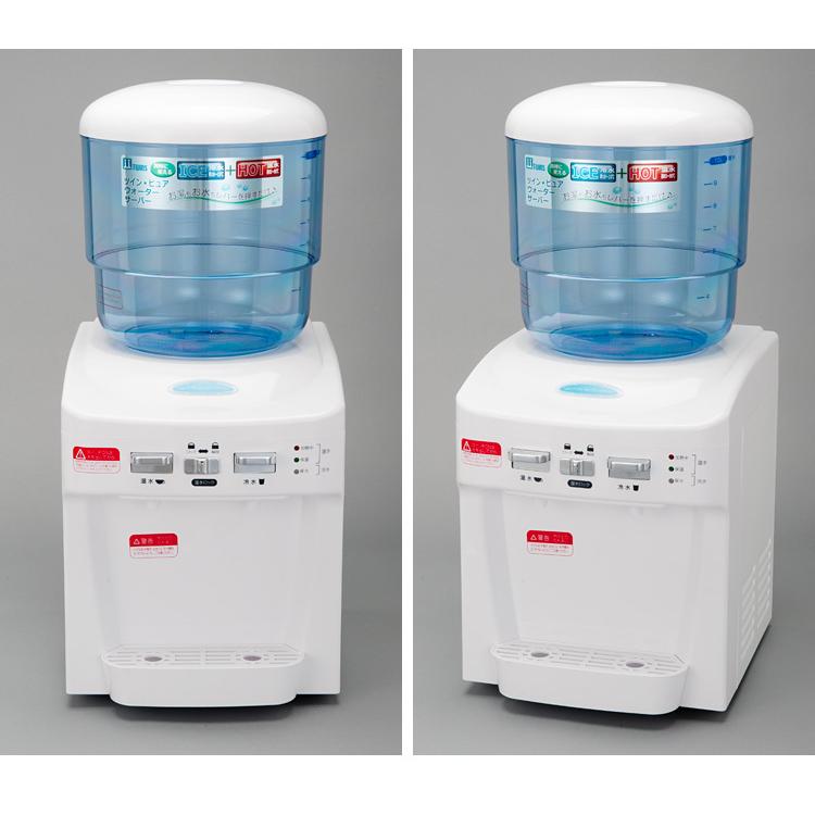 商品情報 【ポイント15倍/送料無料】 ご家庭の水道水をボトルに注ぐだけでウォーターサーバーになります。 スイッチが独立しているので、ICE(約10〜15)もHOT(約85〜90)も同時に使えます。 専用の整水フィルターを通すことで水の中の塩素を除去&カルシウムを付与。 さらに水の酸化還元電位を下げ体に優しい水に! サイズ:幅280×奥行330×高さ620mm 容量:水タンク10L 重量:4.2kg 保冷温度:約15(タンク容量800ml) 保温温度:約90(タンク容量975ml) 使用環境温度:5〜35の範囲 消費電力:通常100W、沸騰時410W コード長:約1.8m フィルター濾過材:不織布、亜硫酸カルシウム、活性炭、銀、ブラックショール フィルター交換目安:1日5Lの使用で約6ケ月 セット内容:本体×1、専用整水フィルター×1、水受け皿×1 保証期間:1年間 ※フィルター使用期間が6か月より前でも、水の味が落ちたと感じたら交換してください。 検索キーワード:卓上ウォーターサーバー/小型ウォーターサーバー/ドリンクサーバー/ドリンクディスペンサー/ミネラルウォーター/卓上/小さい/保温/快適/時短/白湯/コーヒー/紅茶/機能的/シンプル |